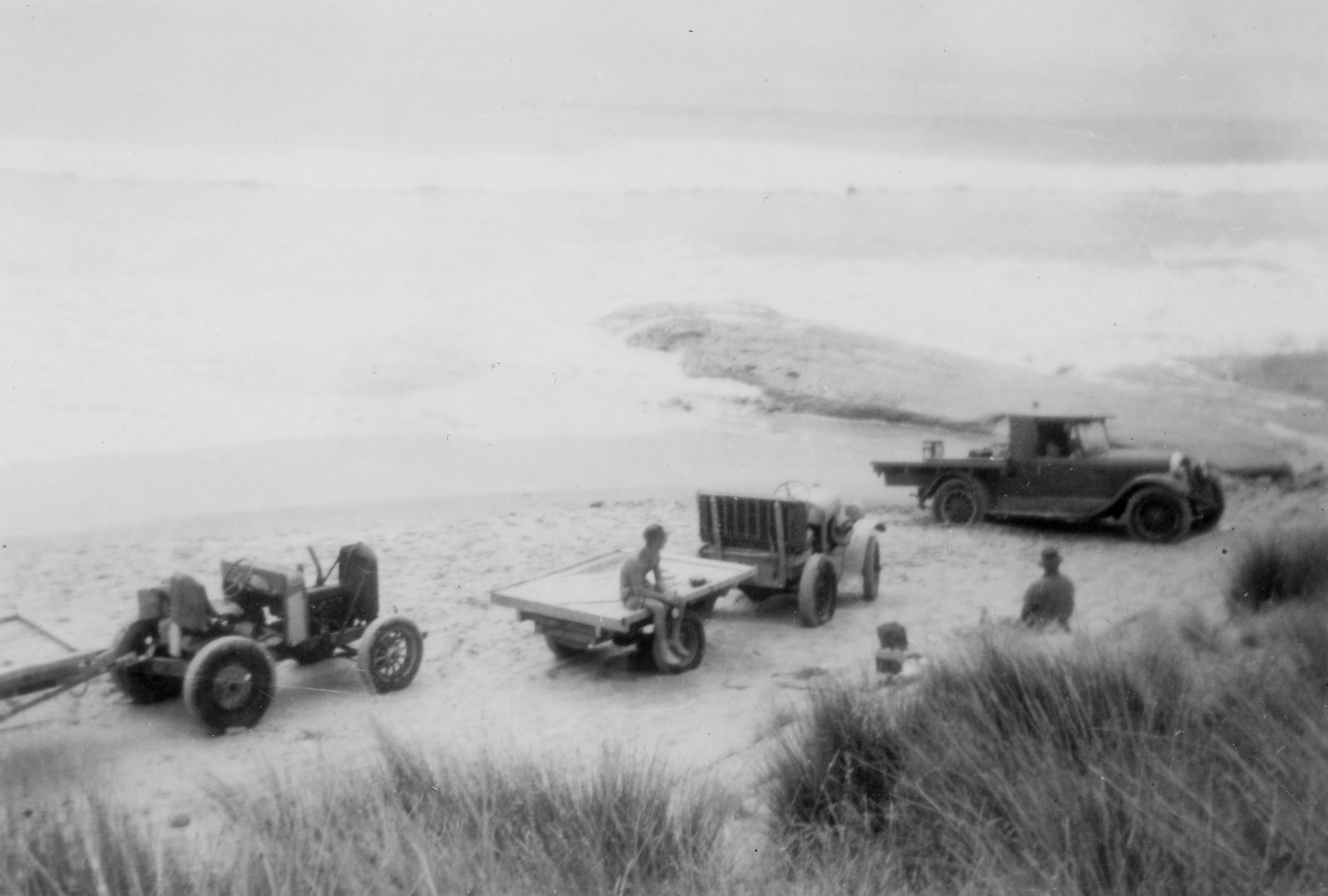 Derek transformed an old garage door into a trailer that he towed behind a tractor to take people around Cape Kidnappers. He was also a keen photographer, taking many photos and slides around the region and making amateur movies.