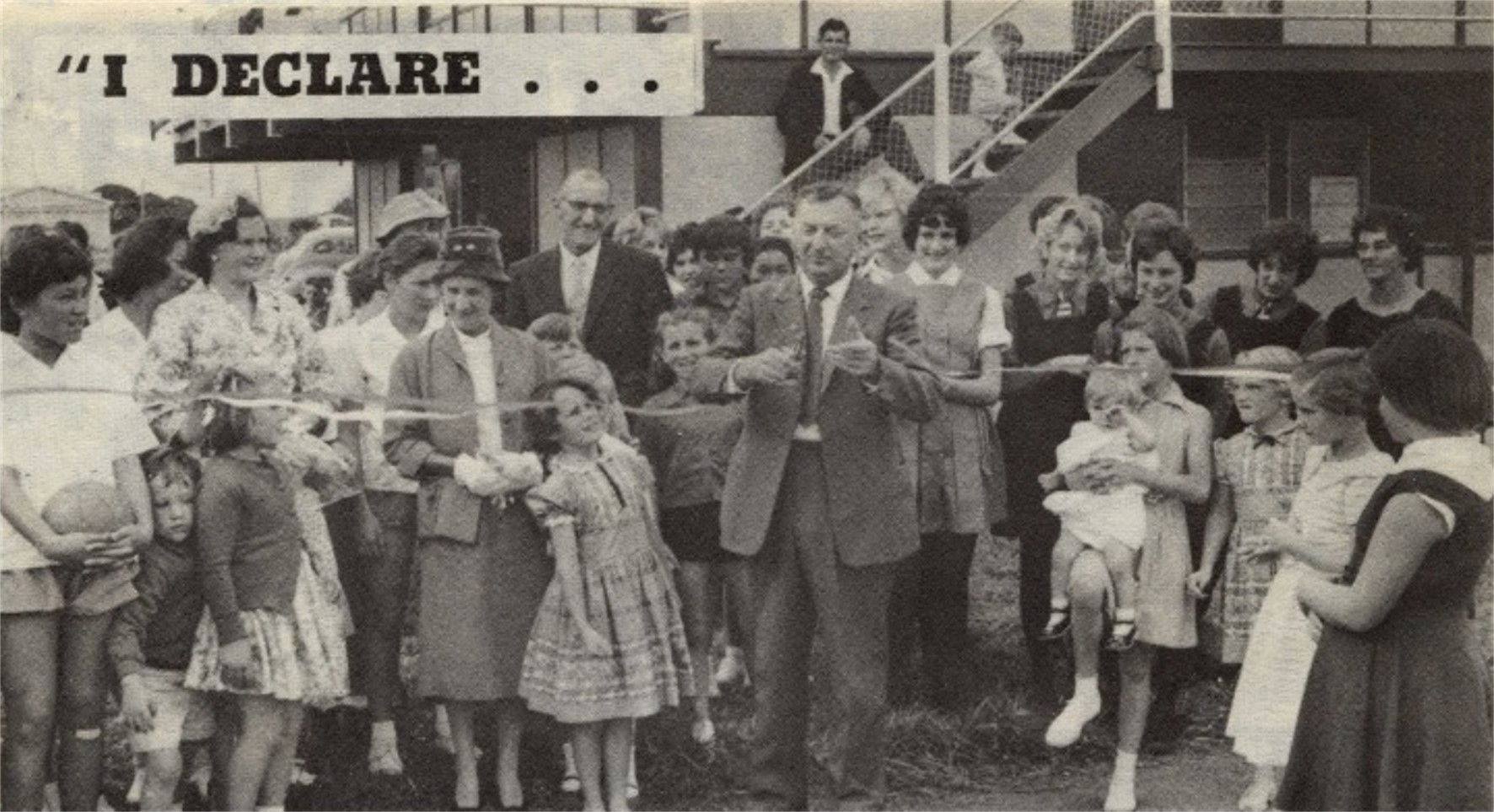 In 1954 a further request was made, this time to name it Memorial Park Avenue, with a sign finally put in place. A Memorial Arch was erected at the entrance to the park and the Haumoana Memorial Pavilion was built between 1955-56 coordinated between the county council and community with a subsidy from Internal Affairs. Local architect John Scott contributed the design at a nominal cost.