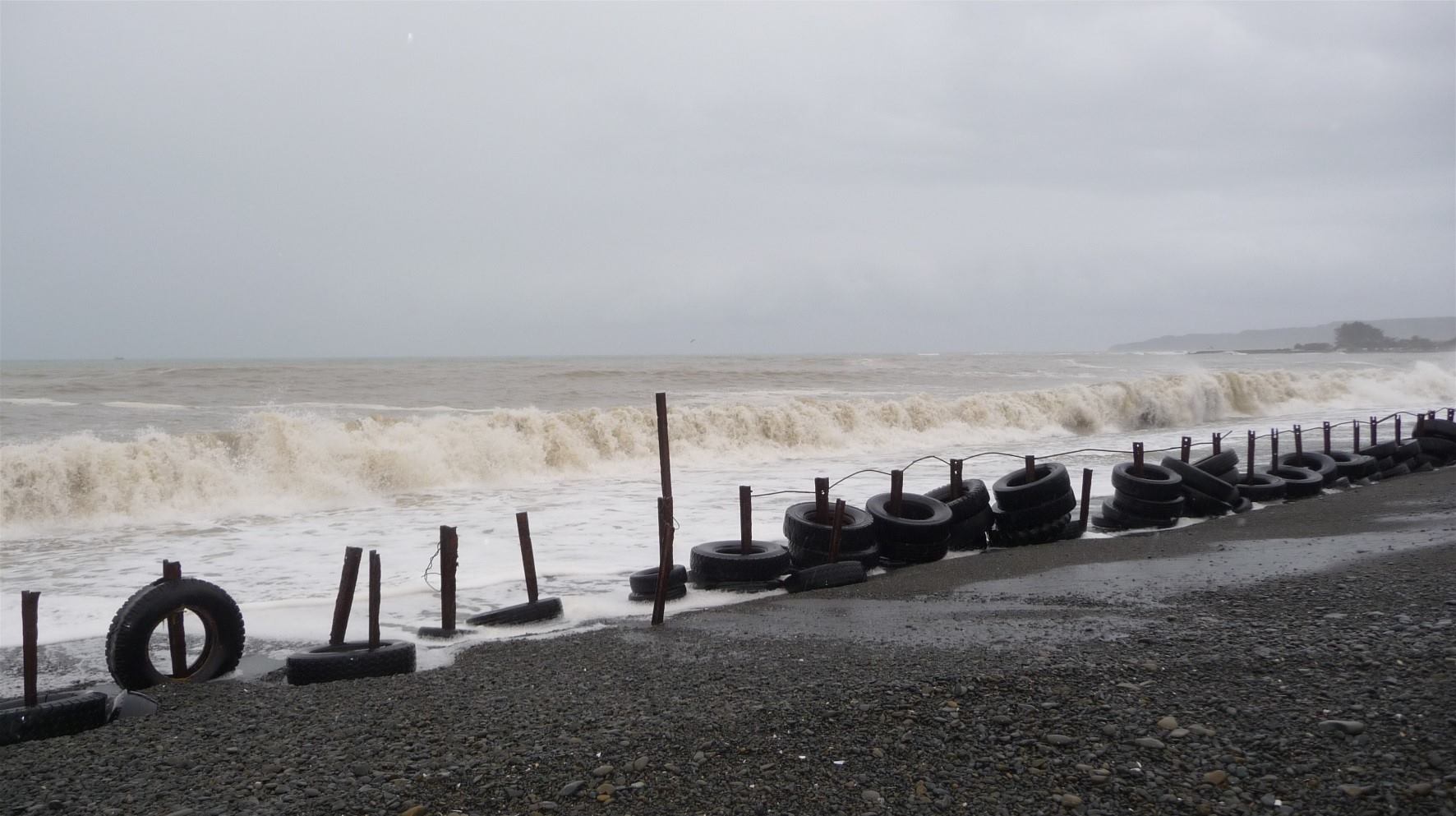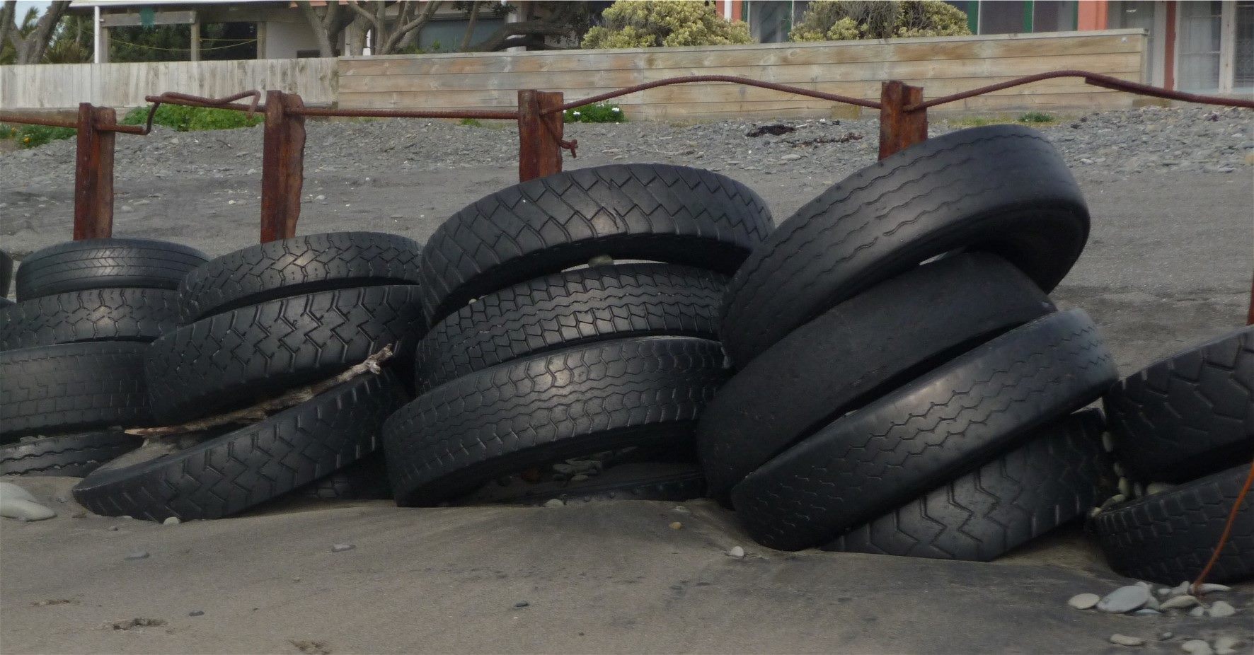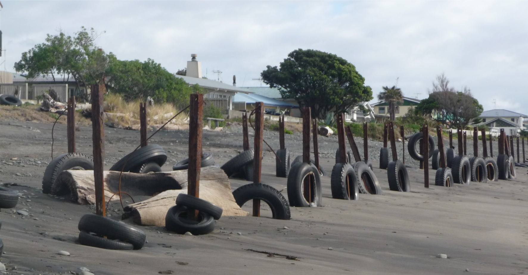 While the two 1500m lines of “picket fence” were heading toward the Te Awanga Lagoon, locals added piles of truck tyres, piercing them through the irons to further break the power of the sea.